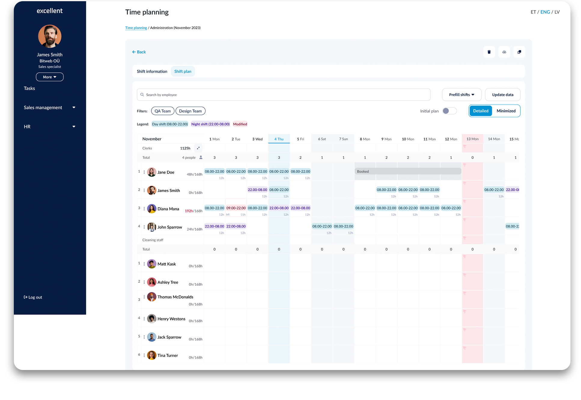 The portal has transparent shift schedules divided by departments or positions to automatically create time tables and salary calculations based on the number of hours worked. In addition, the schedule also takes into account holiday and night hour rates, as well as absences.