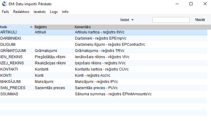 Datu importēšana (versijām vecākām par 8.5 2022-10-22-0651)