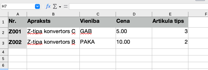 Ievadiet vajadzīgo informāciju par artikuliem, kurus vēlaties importēt.