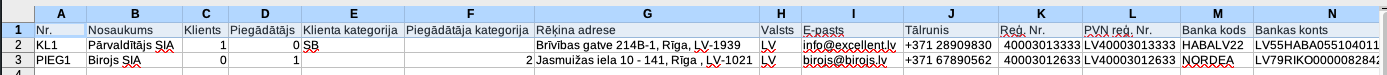 Klienta kategorija – klienta kategorijas nosaukums (jāsakrīt un jābūt izveidotai sistēmā pirms datu importa, vairāk lasiet ŠEIT)