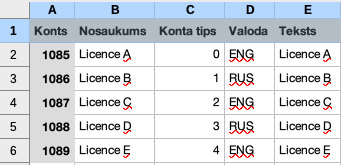 Konta tips – skaitļi, kas apzīmē konta veidu: Aktīvs = 0, Pasīvs = 1, Kapitāls = 2, Ieņēmumi = 3, Izdevumi = 4