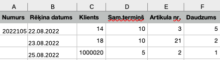 Rēķina datums – datumam jābūt formātā, kāds norādīts datu importa logā (pēc noklusējuma – DD.MM.YYYY)