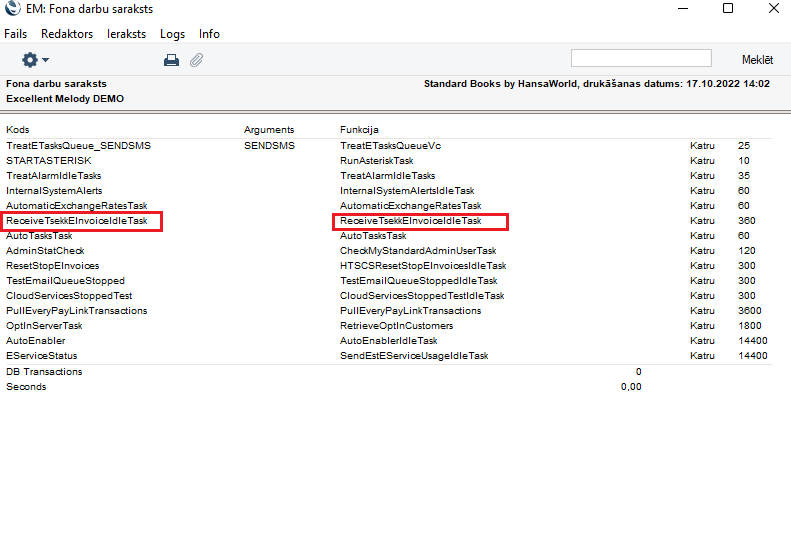 Atskaitē ir jābūt pakalpojumam “ReceiveTsekkEInvoiceIdleTask”.