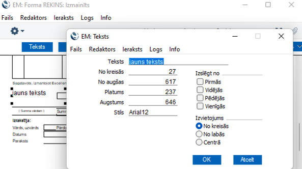 Laukā “Stils” varat izvēlēties piemērotu fontu ar taustiņu kombināciju Ctrl+Enter.