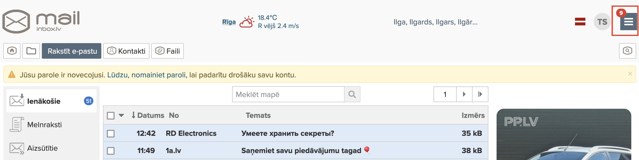 Parole tiek ņemti no Inbox.lv lietotāja kontā.