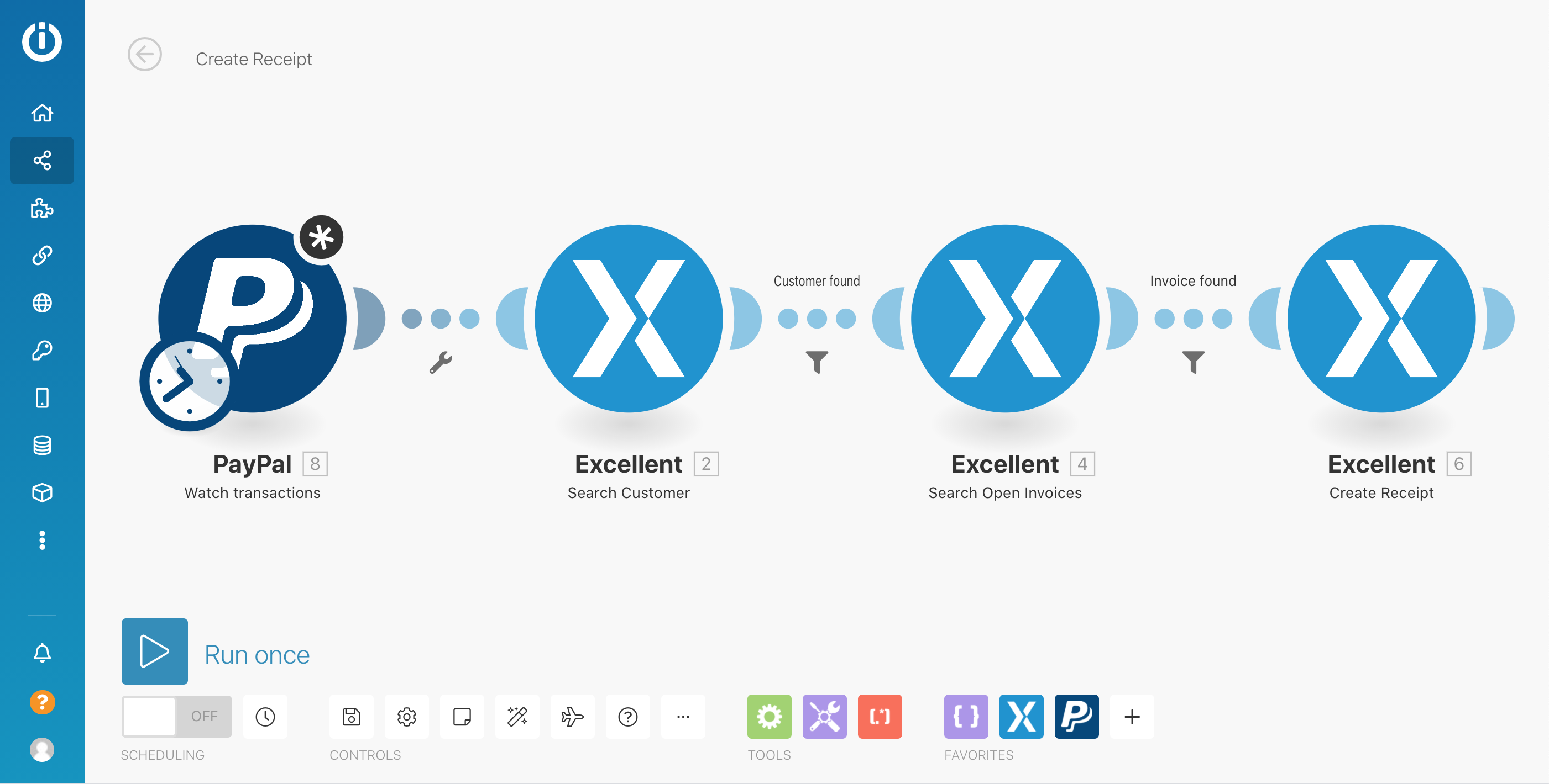 Integromat ir integrācijas platforma, kas ļauj savienot grāmatvedības programmu Standard Books by Excellent ar Paypal, WooCommerce, Shopify, PrestaShop on citām populārām platformām.