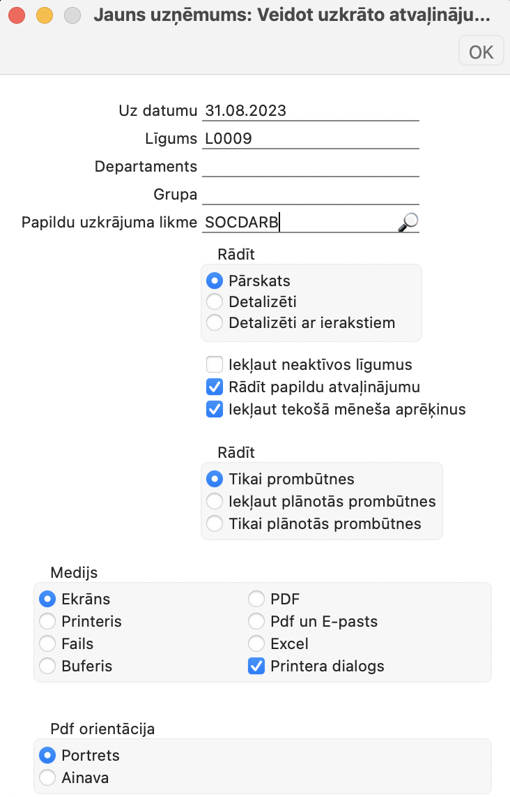 - Papildu uzkrātas likmes (darba dēvēja sociāla nodokļa rēķināšanai) – SOCDARB