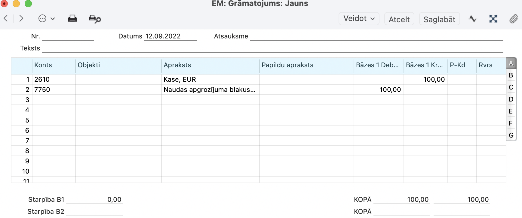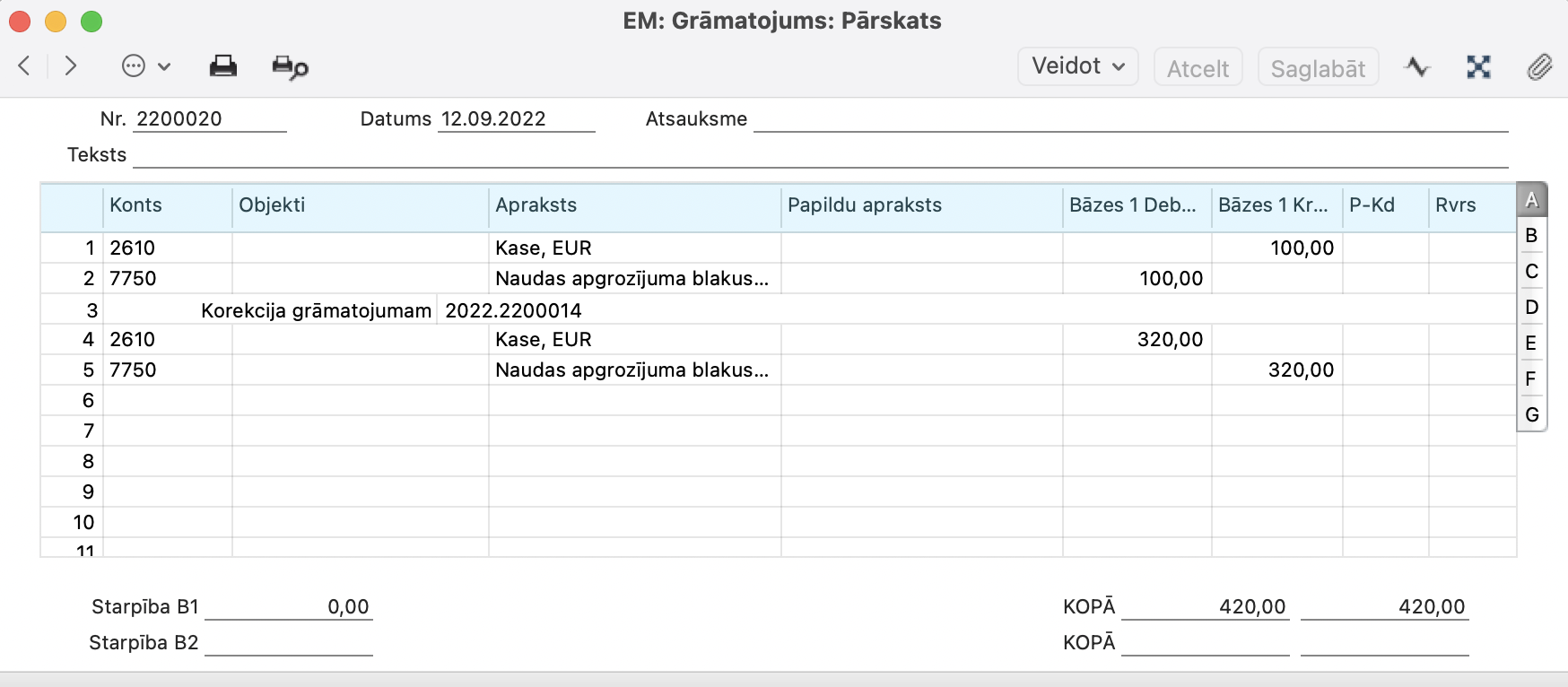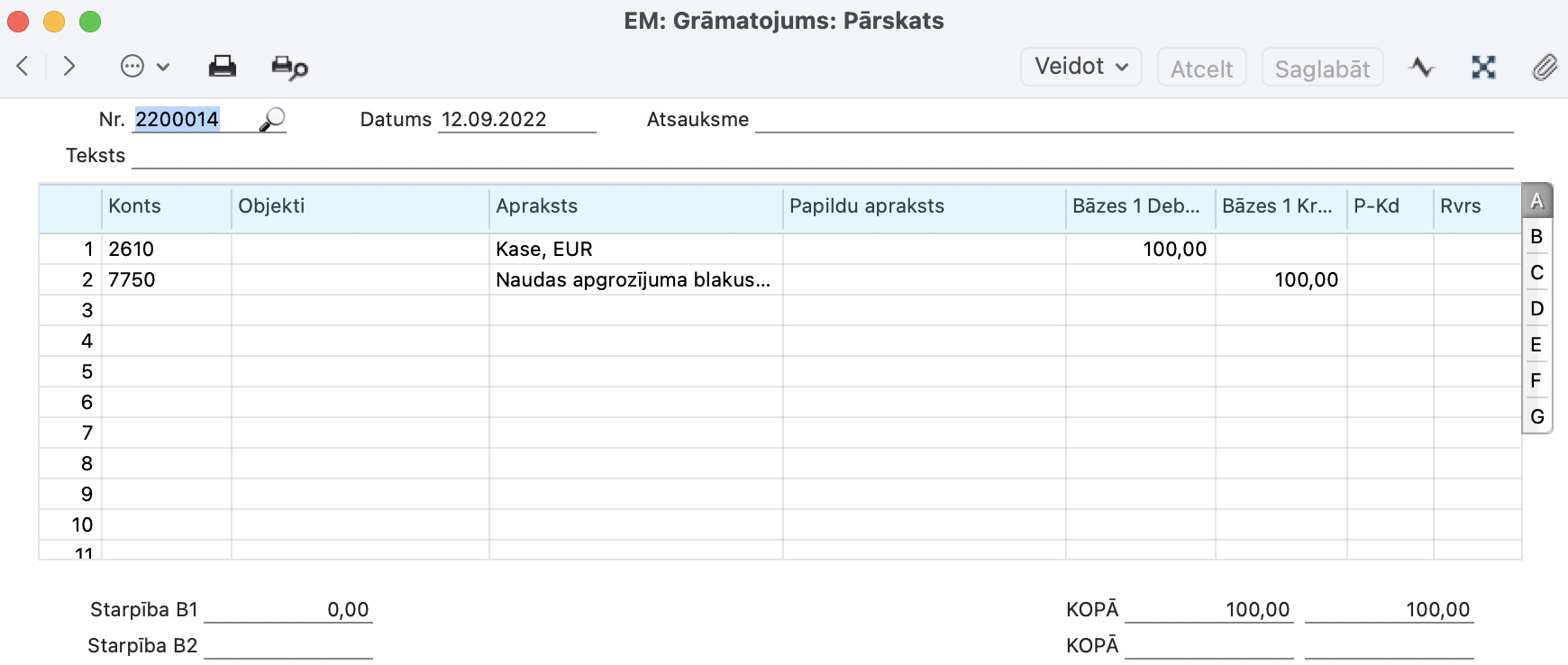 Atveriet moduli Finanses > Reģistri > Grāmatojumi