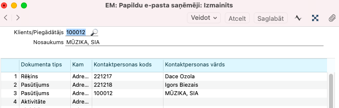 Kā pievienot papildu e-pasta saņēmējus pēc dokumenta veida?