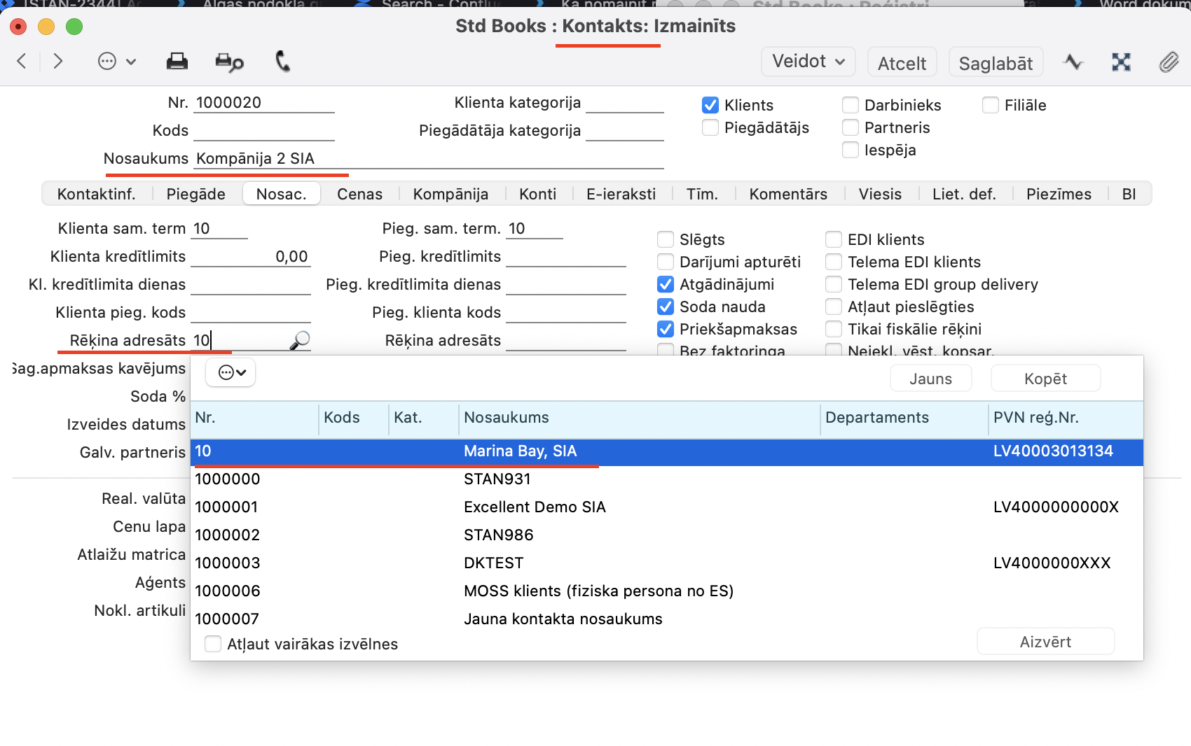 Lai veiktu šādas darbības sistēmā abiem uzņēmumiem jābūt reģistrētiem kā klientiem kontaktu sarakstā.
