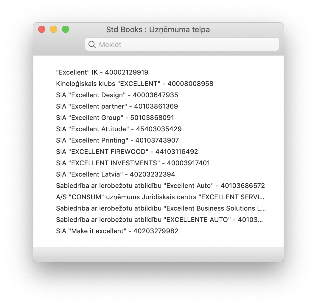 Ja pēc norādītajiem meklēšanas kritērijiem ir atrasti vairāki atbilstoši ieraksti, tad tiks atvērts logs, no kura izvēlēties meklēto uzņēmumu:
