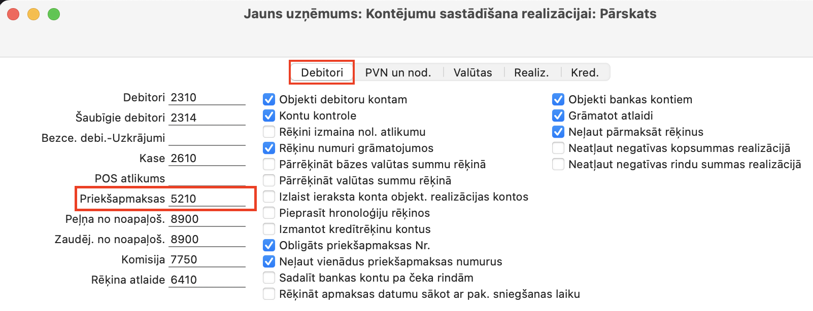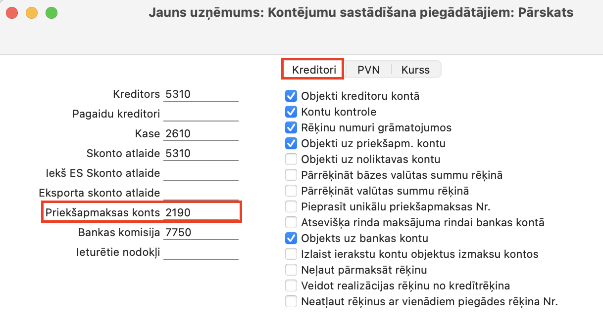 Priekšapmaksas konts nedrīkst būt vienāds ar Priekšapmaksas PVN starpkontu!