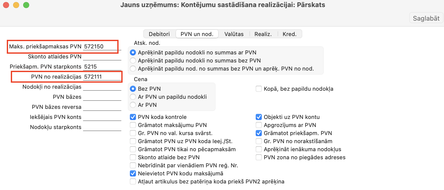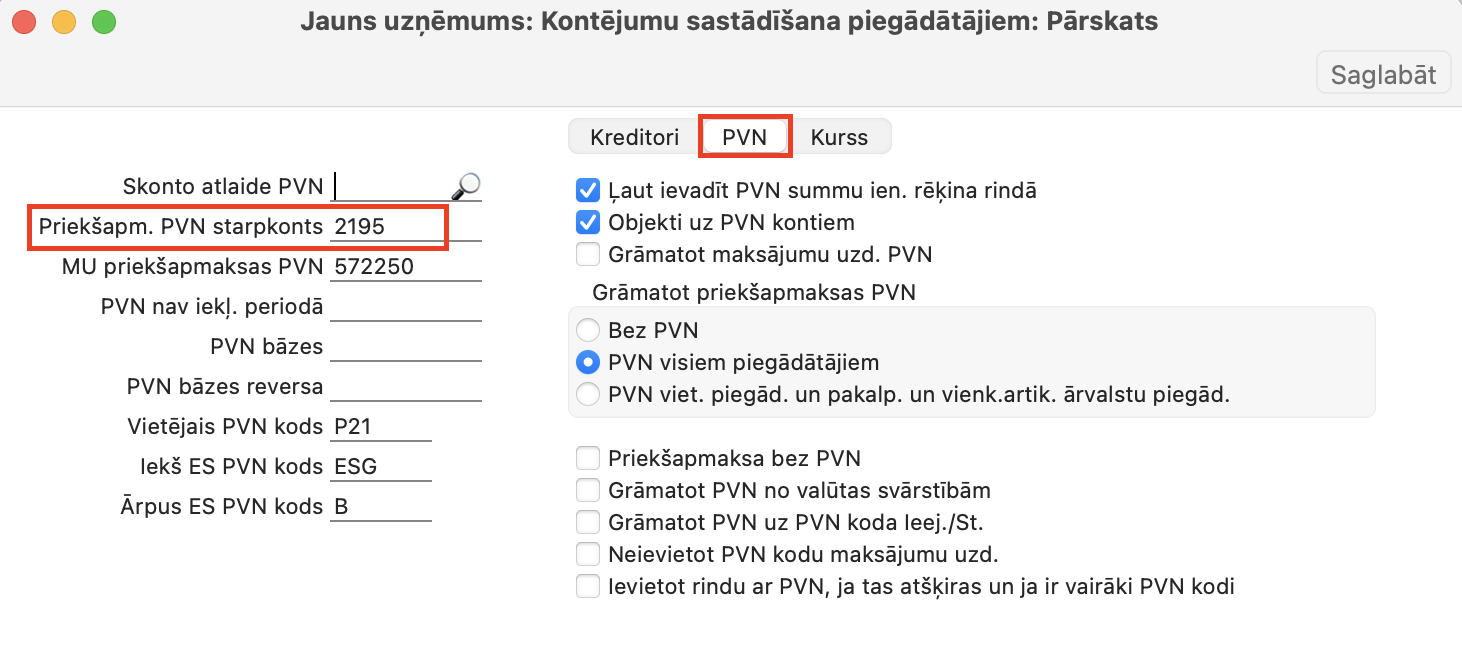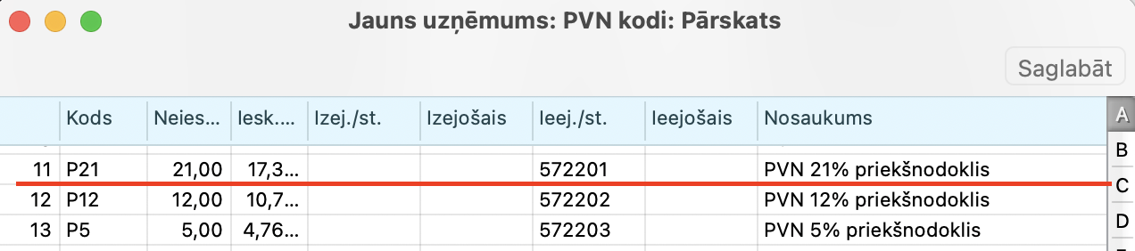 • PVN 21% priekšnodoklis konts – 572201 ir “PVN kreditori – 21%”
