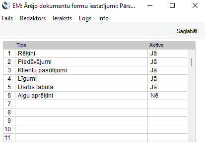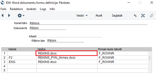 NB! Lai Word formu varētu izmantot, pārliecinieties, ka modulī Sistēma > Iestatījumā Word dokumentu formu iestatījumi ir aktivizēta vajadzīgā forma norādot “Jā” pie formas nosaukuma.